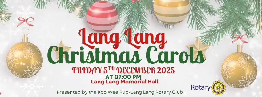 The 2025 Lang Lang Christsmas Carols will be hosted by the Rotary Club of Koo Wee Rup-Lang Lang in conjunction with other Lang Lang Community organisations